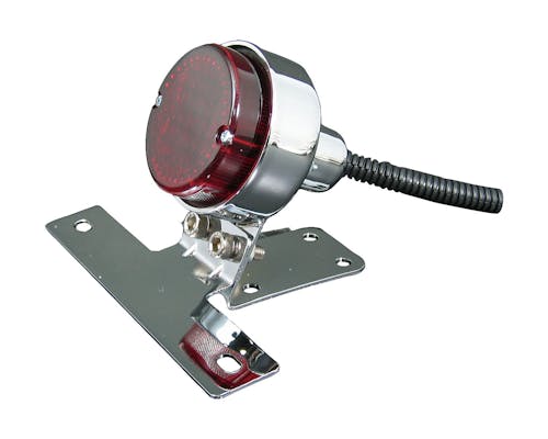 最近流行りのレトロタイプです。 ボバー、クラシックカスタムに使われています。 しかし!! これをハイテックチョッパーに使うと非常にかっこ良いです。 ナンバーライトも付いてるので、お巡りさんにも怒られません。 配線説明 テールランプ:黒 ブレーキランプ:赤 アース:黄 |