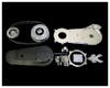 カバー部:プラスチック(カーボンプリント) プーリー、バッキングプレート他:アルミ ギア、シャフト、ボルト類:スチール |
