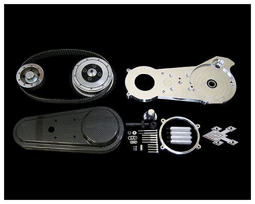 ご存知リベラプリモのオープンベルトキットです。なんとカーボンカバー付き! ベルトの幅は1-3/4インチなので、名前の通りスリムです。 プライマリーが出っ張るのはいや!という貴方、こんな選択肢はいかがですか? ベルトはドラッグレースでも採用されている「ケブラーポリチェーン」と呼ばれる強靭なベルトがセットになっています!! セルスターターに対応。必要な物は全てキットになってます。 プロクラッチを同梱しているので、クラッチ機能もUP! 見た目のインパクト、軽量化、機能UPなど、価格に見合った成果が期待できますよ。 人とは違うカスタムを求めている貴方、検討してみては? ご一緒に関連商品に記載のアジャスタブルキックストップがあると便利ですよ。 プロクラッチは専用の物が使用されているので、 リプレイス用部品はパーツカタログから確認してください。 下記リプレイスパーツ一覧からも確認出来ます。 スリムラインベルトキットのリプレイス部品 |