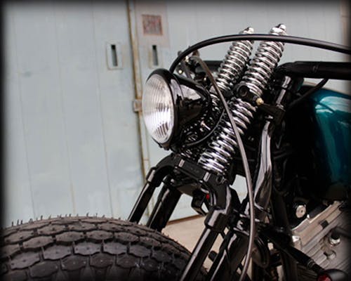 74スプリンガーに合わせて設計したヘッドライトステーです。 その都度製作するのは面倒とのご要望からラインナップを実現しました。 |
