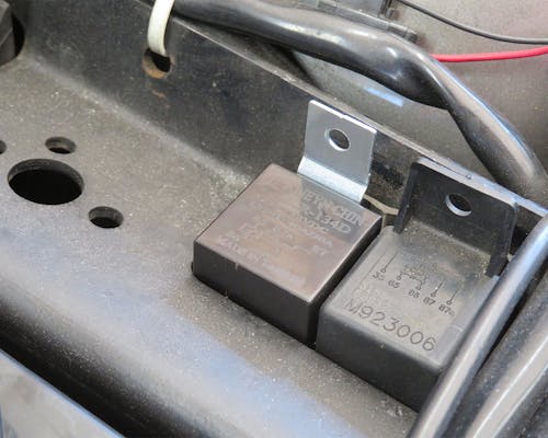 スターターリレーです。 セルスタートのスイッチを押してもスターターが回らない場合は この部品が故障している場合が多いです。 年式の古い車両は予備で持っていると安心ですよ。 |