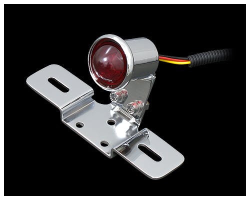 最近流行りのクラシカルなテールライトです。 ボバー、クラシックカスタムに使われています。 これをハイテックチョッパーに使うのもなかなかかっこ良いです。 配線説明 テールランプ:黒 ブレーキランプ:赤 アース:黄 |