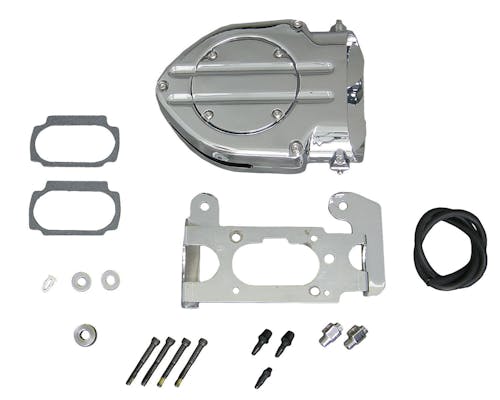 クリアキンの最高傑作、ハイパーチャージャーエアクリーナーです。 存在感のあるそのデザインは人目を惹くこと間違いなし。 見た目も去ることながら、吸入口に付いたバタフライ弁が エンジンの負圧で 開閉する構造を持っています。 スロットルを捻るとバタフライが閉じ、エアとガソリンの量が調節されて モリモリと加速する感覚を体感できるでしょう。 ドラッグスタイルに良く似合います。 バタフライやトラップドアのバリエーションもラインナップしておりますので オシャレにコーディネイトするのも楽しいですね。 |