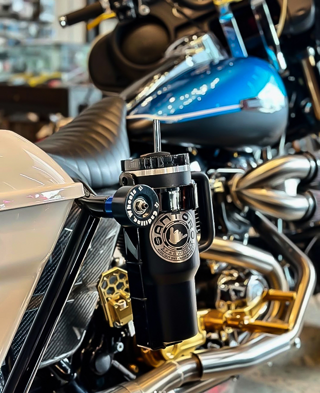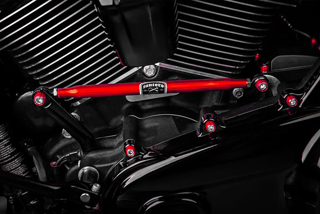 ◎サントロのアイテムはエクストリーム用と言っても過言ではありません。超重量級のツアラーや重量級ダイナなどでの超絶トリックを決めるのは豪快で目を引きますが、確実なアクションの為にはバイクの操作もかなり荒々しくなるのも想像に易いですね。 そんなバイクの操作系も抜かりがありません。