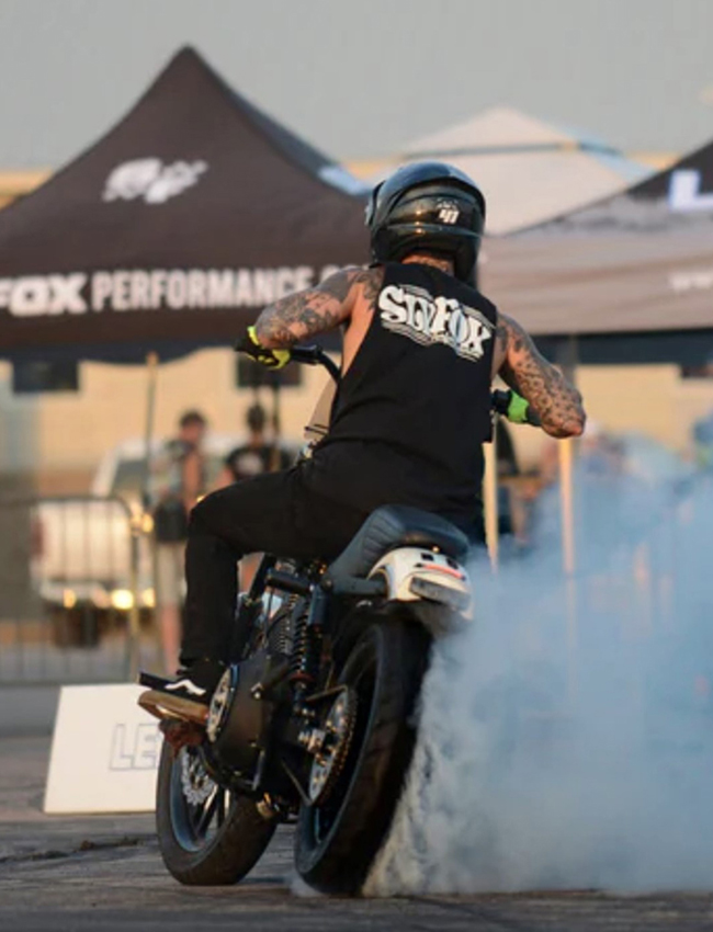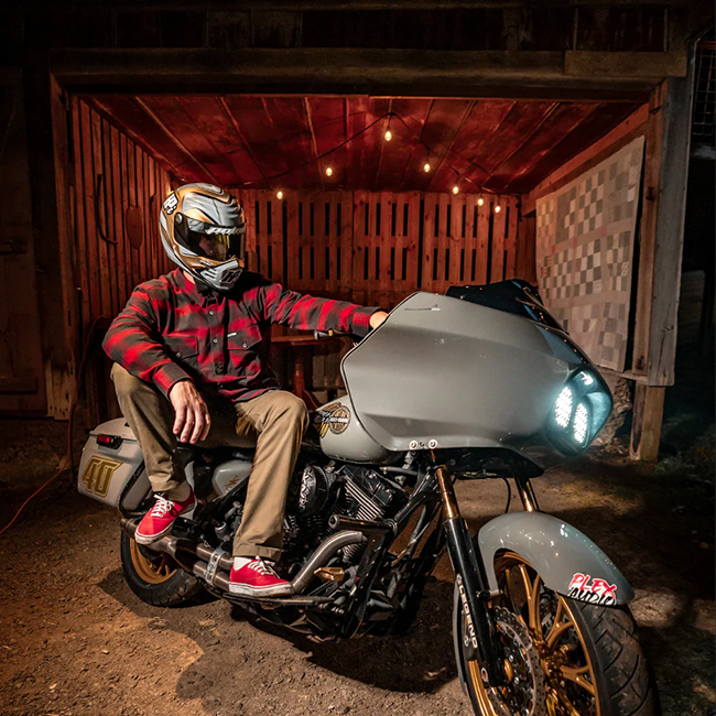 ◎設立者であるAlex Fox:アレックス・フォックスは若干35歳(2025年現在)という若さながら、レーサーであった父の影響によって幼い頃からコンマ数秒の世界を目の当たりにして来たサラブレッド。それらの環境をフルに活かしブランド設立後も自らBaggerマシンを作って参戦するなど、"勝つ為のバイク"そして"勝つ為のパーツ" を世に送り出しています。SLYFOXが人気を博す根源は"ナチュラルボーン"とも言えるこういったバックグラウンドがあってこそなのですね。
