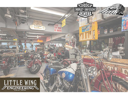 ハーレーダビッドソン、インディアンの旧車~現行モデルまでの修理・チェーンUP・メンテナンス作業をメインに、溶接やヘッドワーク、パーツの店頭販売等も行っております。
