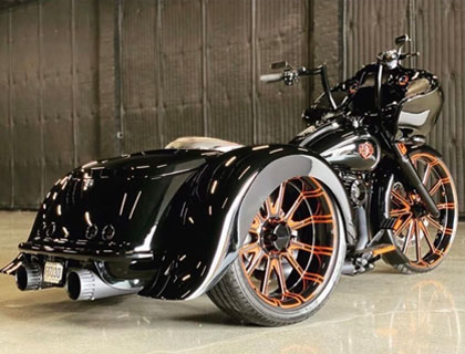自社ブランドUP-JOHNZのツーリングモデル用バガーキット、トライク用エクステンションバガーキット販売