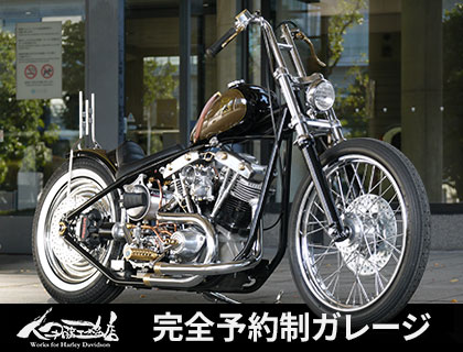 日常の喧騒から離れた静かな一角に、知る人ぞ知る「ヴィンテージハーレーのためのプライベートガレージ」を構えています。