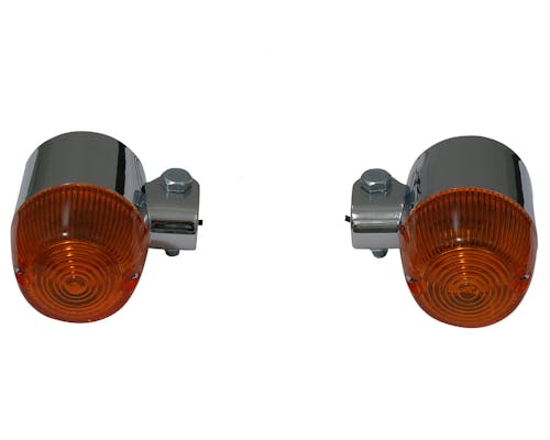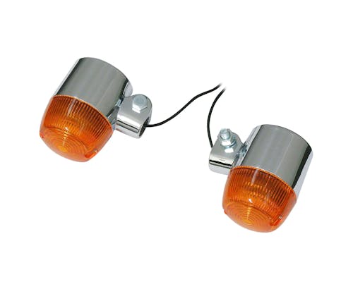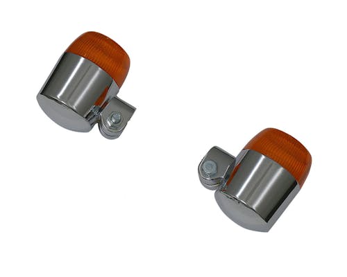 日本旧車ではお約束のウィンカーです。 俗にCBウィンカーともいいますね。 ハーレーにも相性が良く、チョッパースタイルにバッチリ! ※配線は一本でセルフアースなので、その辺気をつけてくださいね。 |