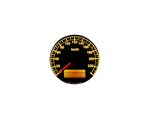 48mm アジャスタブルスピードメーター ステンレス 黒盤 橙光