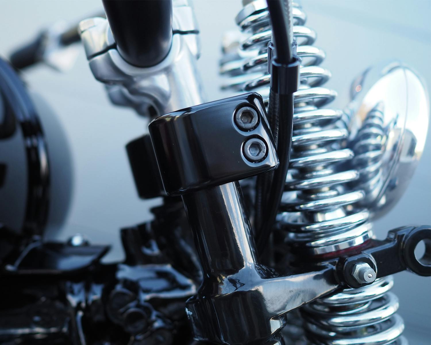 74スプリンガーにライザーを取り付けする際に使用します。 スプリンガーフォークにライザーを取り付けたい方にはお勧めです。 ライザーボルト用の穴の裏側には、アレンボルト(キャップボルト)の頭が隠れるように ザグリ加工が施されております。(※HEXボルトは非対応) ボルトの頭が隠れますのでスッキリとします。 |