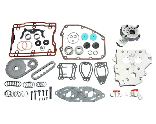 FEULING製のハイパフォーマンスエンジンパーツです。 1999年~2006年式までのウィークポイントである機械式(スプリング)のテンショナーを 2007年から採用された油圧式チェーンテンショナーへ換装するキットです。 OE+シリーズのカムプレートやオイルポンプも同梱されているので、 同時にパフォーマンスアップも図れます。 |