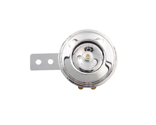 クロームホーンです。直径約6センチです。 これ替えるだけで見た目が結構引き締まりますよ。 12V汎用なので、大抵のバイクに付けられます。 |
