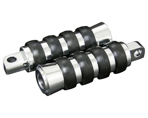 LASOOタイプのフットペグです。フットペグ回りをすっきりさせたい人や、リア用にどうぞ。 同じLASOOタイプのシフトペグやグリップもあるのでデザインを揃えるとおしゃれです。 LASSOフットペグスモールリプレイスラバーも御用意しております。 関連商品をご覧下さい。 2011年以降のXL1200X/V/Cに取り付ける際は フットペグマウントコンバージョンキット013502(クローム)/013503(ブラック)が必要となります。 |