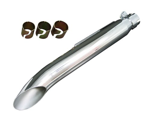 この形は車種、年式を選びませんよね。 スペーサーを使用することで1-3/4in(約45mm)~1-1/2in(約38mm)に対応します。 ただ、排気が横向くので 盗難警報機装着車の横を通る時には気をつけてください。 |