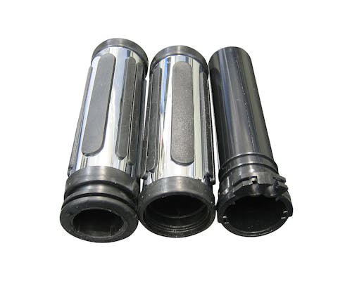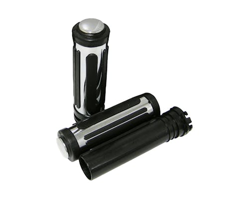 ISOスタイルカスタムグリップです。 ISOタイプのフットペグ、ラージタイプ、スモールタイプ&シフトペグと合わせてください。 取り付け方は左(クラッチ側)はハンドルにかぶせるだけ。 右(アクセル側)は付属のインナーを取り付けてください。 |