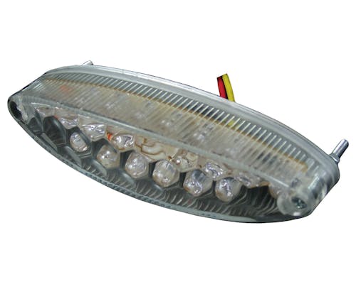 最近やっと主流になってきました。LEDのテールライト。 驚くほど明るいので、安全面もばっちりです。 マウントベースをうまく工夫すれば、ユーロ系ハイテックなんかにも ベストマッチです。 なかなか侮れません。 ナンバー灯もLEDで付いています。 配線説明 テールランプ:黒 ブレーキランプ:赤 アース:黄 LED数 テールライト部:20個 ナンバーライト部:6個 |