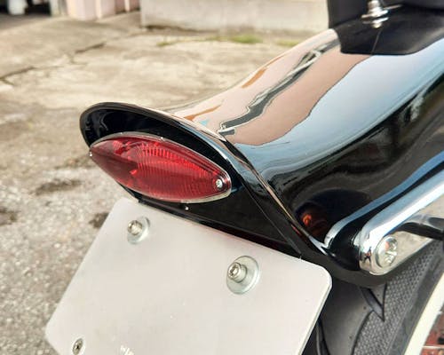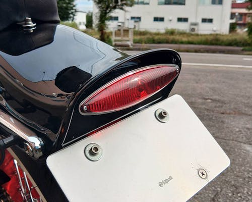 定番のスネークアイテール。 車両を選ばない形ですね。 ナンバー灯が付いているので安心して走れます。 配線説明 テールランプ:黒 ブレーキランプ:赤 アース:黄 |