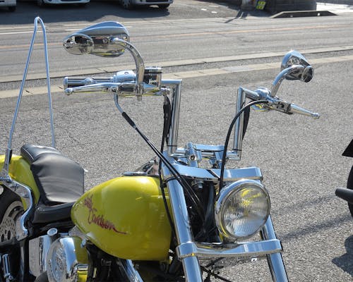 ロボットハンドルバーとも言いますね。 Kカスタムの定番です。 8inの高さになります。結構高めです。 ちなみにヘコミとは配線の逃げのことです。 ~82年式まではヘコミ無し、それ以降はヘコミ有りを使ってください。 |