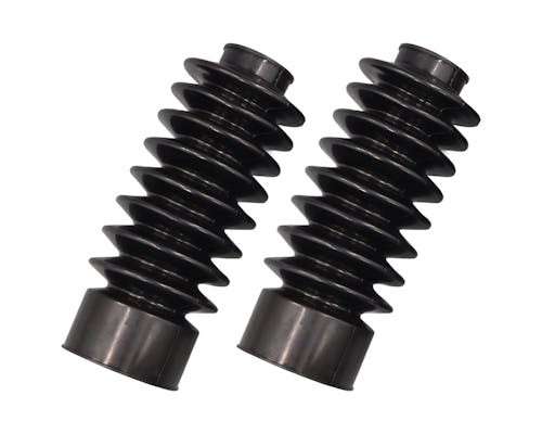 1984年~2008年式のFXST 1980年~1986年式のFXWG 上記のモデルに使用されている形状であり、 レトロな感じのフォークブーツです。 トラッカー系カスタムやレトロカスタムにぴったりです。 切込みが無いタイプですので、取り付けはトリプルツリーの分解が必要になります。 |