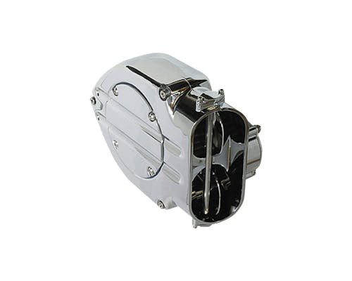 クリアキンの最高傑作、ハイパーチャージャーエアクリーナーです。 存在感のあるそのデザインは人目を惹くこと間違いなし。 見た目も去ることながら、吸入口に付いたバタフライ弁が エンジンの負圧で 開閉する構造を持っています。 スロットルを捻るとバタフライが閉じ、エアとガソリンの量が調節されて モリモリと加速する感覚を体感できるでしょう。 ドラッグスタイルに良く似合います。 バタフライやトラップドアのバリエーションもラインナップしておりますので オシャレにコーディネイトするのも楽しいですね。 |
