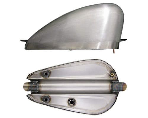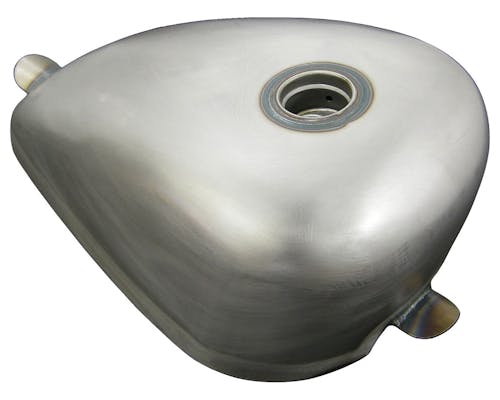 タンク裏に設けられておりますオーバーフローパイプが梱包状態や真鍮という素材の兼ね合いにより、 曲がってしまっている場合がありますが、通常は使用しない箇所となっていると共に、 穴は塞がっておりますので仕様に問題はございません。 もしもオーバーフロー機能を設ける際には、 適宜プライヤー等でパイプを修復し穴開け加工をされた上でご利用ください。 ※当商品は加工ベースの為、スチール素材素地の状態です。 製品特性上錆が発生してある場合がございますので予めご了承下さい。 ガスキャップはスクリュータイプ右のみ適合です。 一部年式ではスクリュータイプの物でも若干きつくなります。 水平に差込みを行わないと、正しく入りません。 内容量表記(ガロン)は目安となっております。 車体にマウント後、実際に使える容量は表記より低くなる場合がございます。 ※当商品を購入及び施工前に『ガソリンタンク取り扱い注意事項』を必ず御確認下さい。 注意事項を確認せず塗装や加工等を行った後に発覚した製品の不具合は 一切お受け付けを致しませんので予めご了承下さい。 |