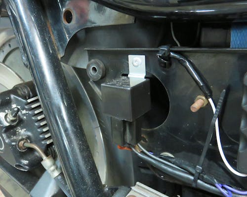 スターターリレーです。 セルスタートのスイッチを押してもスターターが回らない場合は この部品が故障している場合が多いです。 年式の古い車両は予備で持っていると安心ですよ。 |