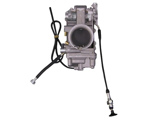 純正オプションキャブレターでもおなじみ、ミクニHSR45キャブレターです。 強制開閉式キャブレターの弱点であった、スロットルバルブの張り付きを ローラーベアリングを内蔵することで解消し、スムーズなスロットルワークを実現しました。 ケイヒンFCRと肩を並べるハイパフォーマンスキャブレターですが、 純正オプションで採用されていたこともあり、扱いやすさも兼ね備えています。 街乗り・ツーリングから高速域まで、オールマイティなパワーアップをお求めの方にオススメ! HSRキャブの内部部品一覧はこちら 取付方法等はインストラクションをご確認ください。 |