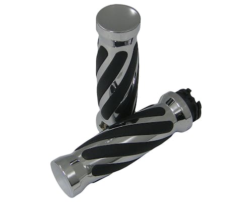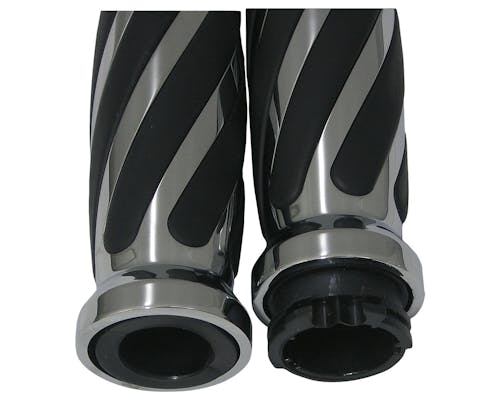 レールグリップにねじり(ツイスト)デザインを加えたビレットグリップです。 特徴的なデザインで、お勧め度はかなり高いです。 インナースロットルも付属されたお得なセットです。 |
