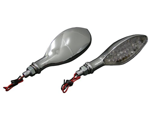 流れるようなデザインが美しいLEDのウインカーセットです。 サイズも大きめで視認性が良いです。 ハイテックなカスタムには良く似合いそうですね。 |