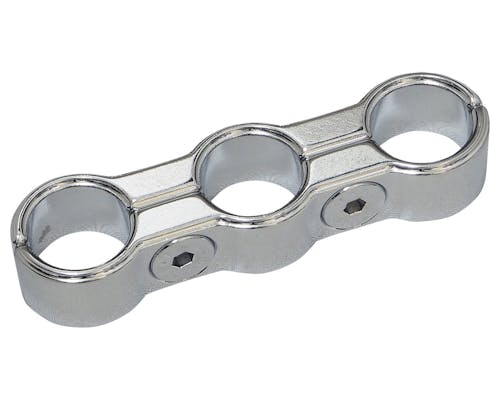 3/8インチホース3本をスッキリまとめる為のパーツです。 オイルラインをきれいに揃えたい場合にオススメです。 デザインのアクセントとしても映えます。 |