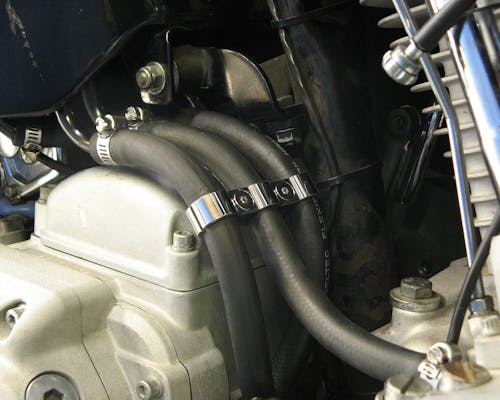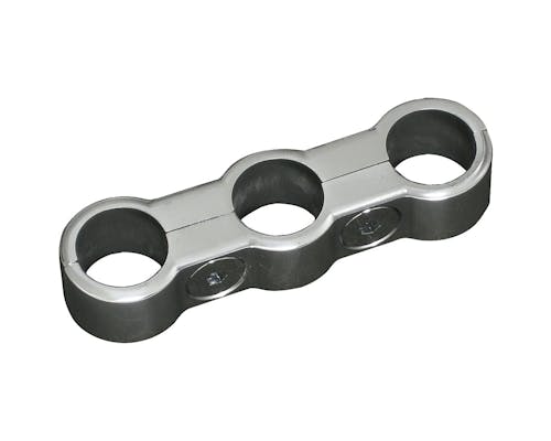 3/8インチホース3本をスッキリまとめる為のパーツです。 オイルラインをきれいに揃えたい場合にオススメです。 デザインのアクセントとしても映えます。 |
