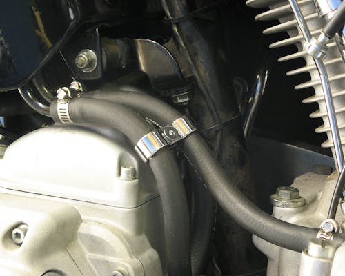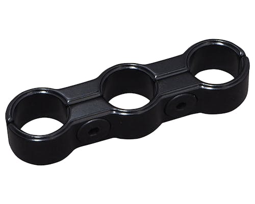 3/8インチホース3本をスッキリまとめる為のパーツです。 オイルラインをきれいに揃えたい場合にオススメです。 デザインのアクセントとしても映えます。 |