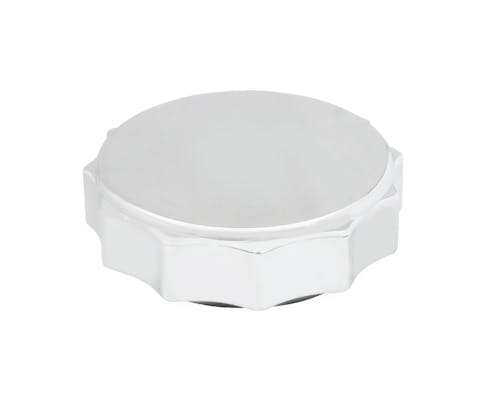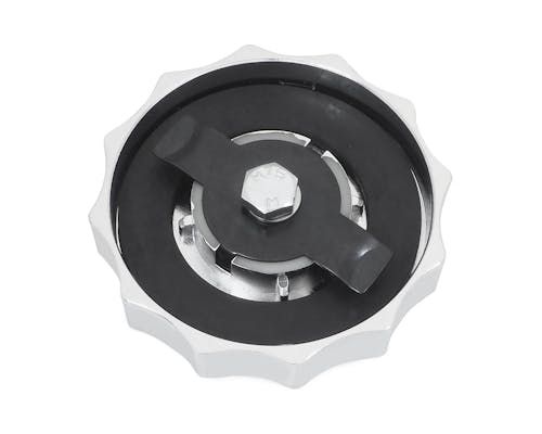 スポーツスターや古いビッグツインに使われていたカムスタイルです。 凹凸があしらってあり、着脱時の握りやすさにも一役買っていますよ。 関連商品に掲載されているタンクにも使用可能です。 右側にはベント機構も付いています。 |
