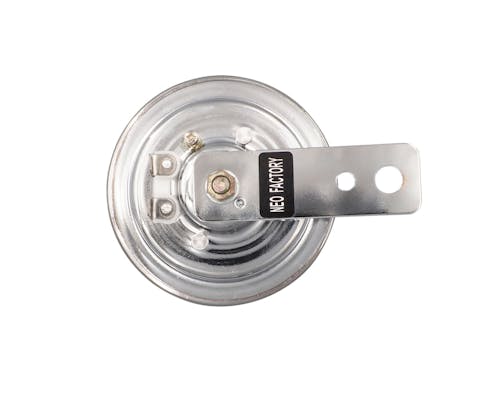 クロームホーンです。直径約9センチです。 シンプルなデザインで、音量も充分。 12V汎用なので、大抵のバイクに付けられます。 |