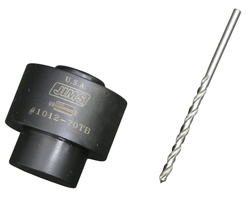JIMS社製のハーレー専用の高精度ツールです。 カムカバーに正確にカムブッシングを圧入する為の工具です。 また、ブッシング固定用のノックピンの穴あけにも使用します。 メーカーインストラクション |