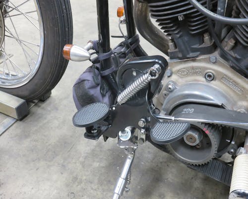 ハーレー乗りの真骨頂、ジョッキーシフトキットです。 フットクラッチとハンドシフトで操るハーレーは一味違います。 このキットはロッカータイプです。 クラッチを切った状態でロックできるタイプですね。 |