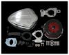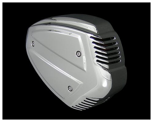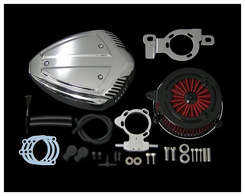 存在感のあるハイパフォーマンスエアクリーナーキットです。 吸入効率の高い形状なので、排気系やキャブ、インジェクションをカスタムした際に 威力を発揮します。 吸気口から見える赤いエレメントも、さり気なくカッコいいですね。 フルキットです。 |