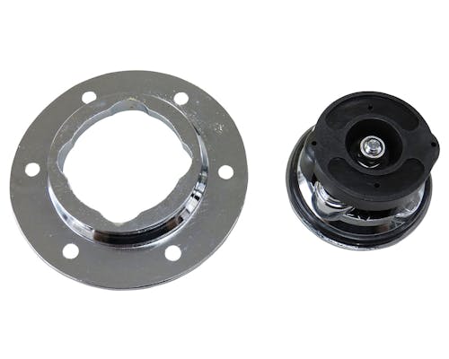 エアクラフト(航空機)タイプのガスキャップです。 エアベント付き。 レバーを起こして回すだけの簡単脱着で、給油がラクチン&しっかり固定の 優れた構造を持つガスキャップです。 見た目もレーシーでインパクト大!! ベースプレートが大きいので、給油時のガソリンこぼれも防ぎ易いですね。 こちらのキャップは構造上ガソリンを満タンに近く入れますとベントから漏れが発生します。 組み合わせるタンクの状態によりますので一概には言えませんが、 気になる程の漏れであれば適宜加工が必要ですので技術力のあるショップ様にご依頼ください。 |