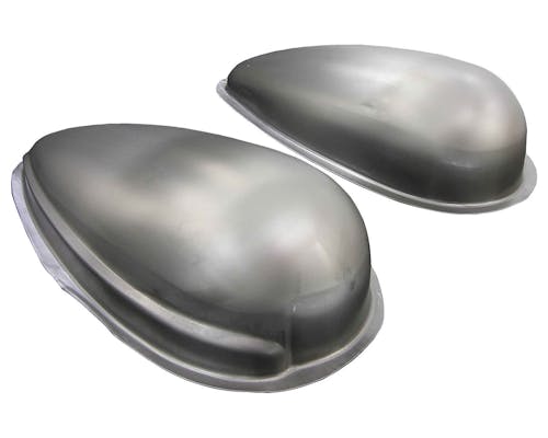 マスタングタンクの素材そのものです。 ちょうどタンクを左右に分割したような状態です。 完成品を加工するより、自由度が高くローコストで便利ですよね? オリジナルタンクを作る際に、バングやコックのアウトレットと組み合わせてご使用下さい。 |