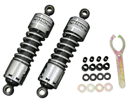 ショック左右1セット 3/8inボルト用カラー×4 1/2inボルト用カラー×4 スペーサー×4 ワッシャー×4 プリロード調整ツール×1 |