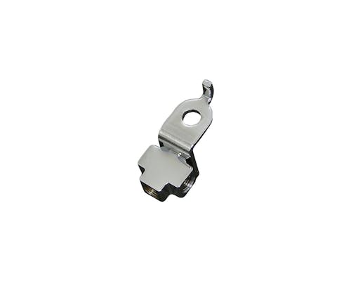 OEMタイプフロントブレーキティーです。 ブレーキラインを分岐させる際に使用します。 三又(みつまた)とも言いますね。 ダブルディスクに適しています。 ティー自体が回らないように、マウントタブの先端にツメが付いています。 錆が発生したり、ステーが折れてしまったら交換をしてください。 |