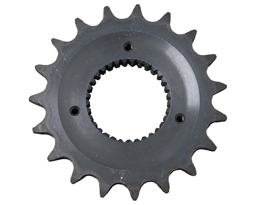 トランスミッション側のスプロケットです。 トランススプロケットは丁数が少ないほど加速(トルク)重視、 多いと伸び(最高速)重視になります。 リアスプロケットとの組み合わせで調整できますので、お好みの調整をどうぞ。 |