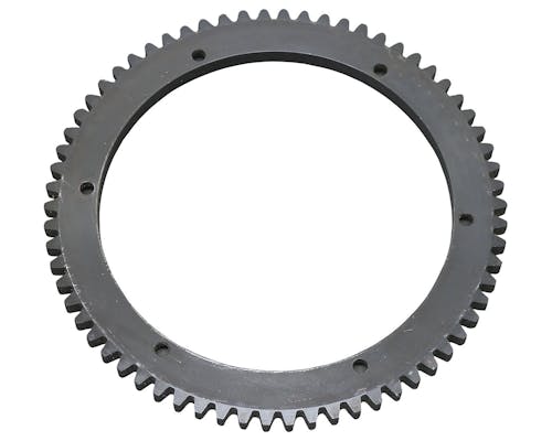 スターターリングギアです。 磨耗してくると、始動時にピニオンギアのかかりが悪くなり、 セルが空回りしたりします。 一度リングギアをナメてしまうと急速に症状が悪化しますので、 早めの交換をおすすめします。 |