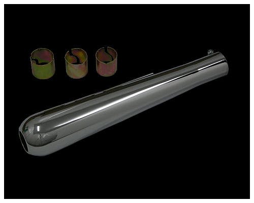 エンドにかけて丸みのあるラウンドシルエットが 特徴的なマフラーエンドです。 シンプルながらも目を引くシルエットで、チョッパーから ストックスタイルまで似合いそうですね! こちらは1-3/4in(約45mm)のエキパイ対応です。 |