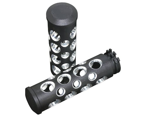 カートゥーンに登場するチーズを連想させるような 大小のパンチング処理が施されたカスタムグリップです。 ハイテック系カスタムによく合う洗練されたデザインが魅力です。 さらにスロットル側にはベアリングを装備しており、 スロットル操作を軽くする工夫がなされています! |