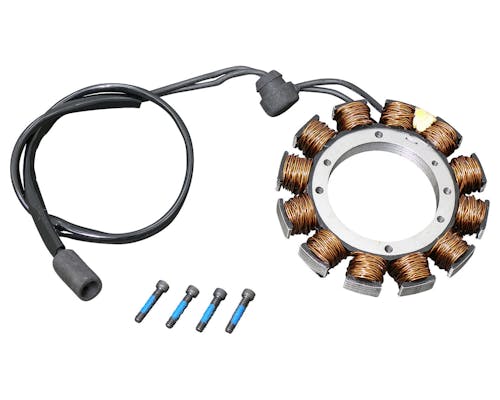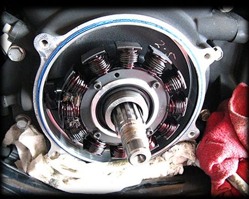ハーレーの発電部分を担うステーターコイルです。 バッテリーやレギュレターを交換したけど電装系がおかしいという時は、 これが壊れているときがあります。 プライマリーケースより内側に入っているので、交換は結構大掛かりです。 ショップで診てもらいましょう。 |