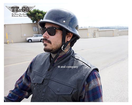 その歴史や背景などから、CHOPPERシーンではよくチョイスされる 『ジャーマンスタイル』 短く小ぶりなツバが、サイド~バックへと流れるデザイン。 日本人の頭部に合わせて成型したシェルは、軽くて丈夫なABS樹脂製です。 人気のUSタイプで、巷のハーフヘルメットに見られる「マッチ棒状態」にはならず、 眼深にバランスよくかぶれます。 大きく開いたY字のベルトは、耳に接触し難く、安定した装着感があります。 帽体が常に前方に傾き、眉毛ラインまで深くかぶれるように、Y字のベルトの長さを設定。 ベルトの装着にはDリングリリースを採用。 そして装着後に余ったベルトはスナップボタンで固定することができ、 風などによるバタつきを解消します。 |
