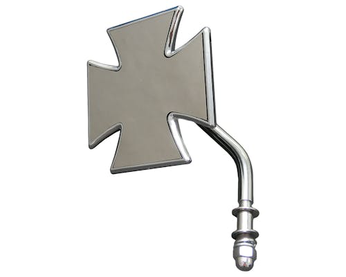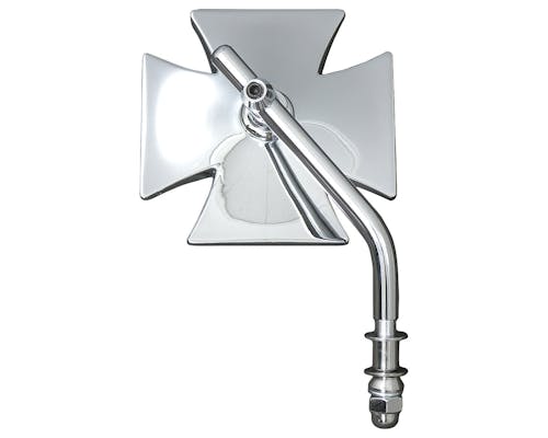 マルチーズクロス型のミラーです。 ミラー部分もしっかりガラス製でただの飾りではありません。 デザイン重視の形状ですが、ミラー面は大きめなので、 見た目以上に視認性は良好です。 ミラーとステムは芋ネジで固定するタイプですので、位置の調整が可能です。 |