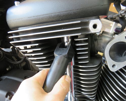 JIMS社製のハーレー専用の高精度ツールです。 プッシュロッドカバーのクリップの着脱に使用します。 取り外す場合はカバーの穴にピンを引っかけて引っ張ります。 取り付ける場合は工具の先端にカバーをセットして、押し込みながらスナップすることではまります。 ドライバーで無理にこじって付けようとするとカバーの破損や怪我の元です。 専用工具を用意しましょう。 メーカーインストラクション |